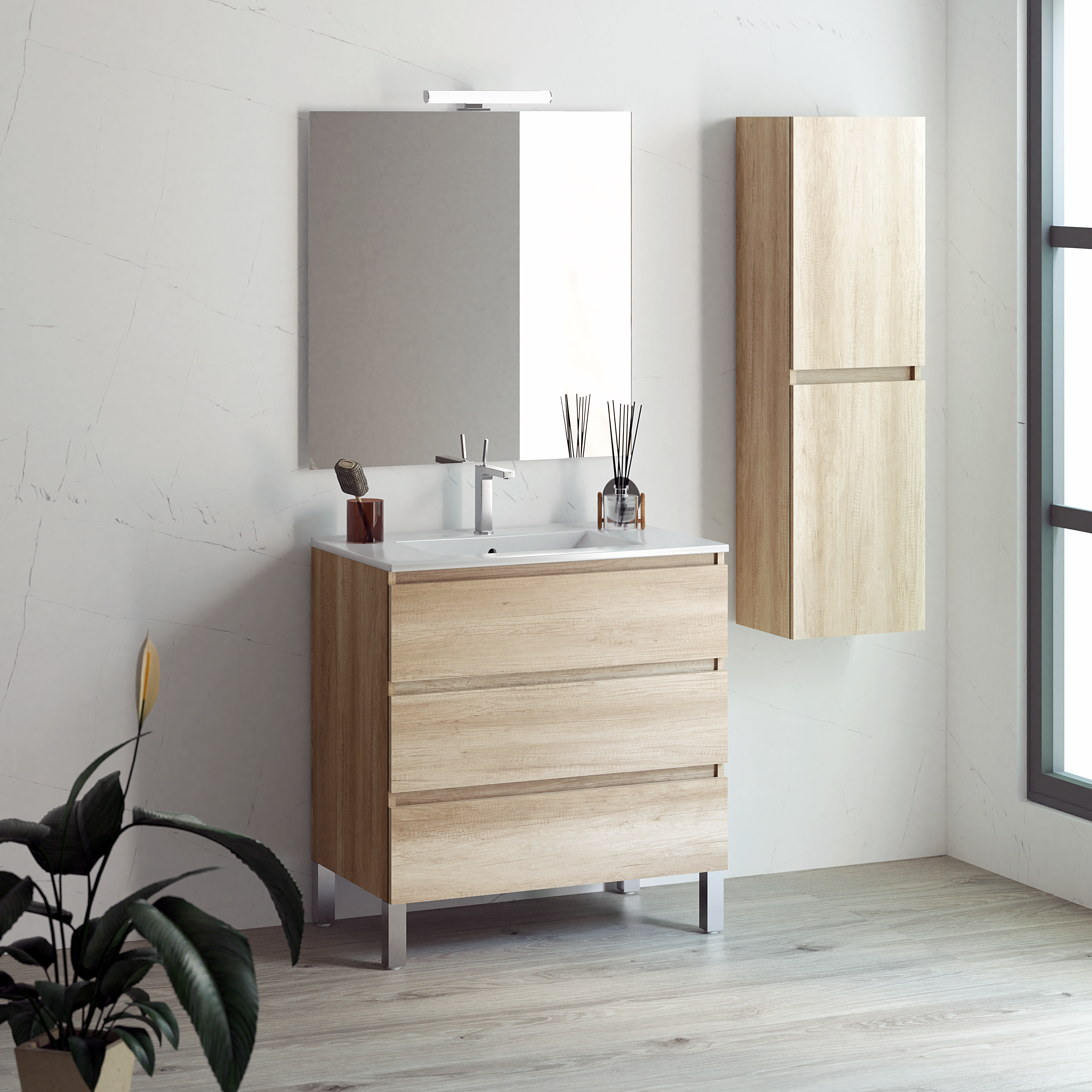 Composición Mueble de Baño Modelo Eklo 3 cajones + cerámica extraplana