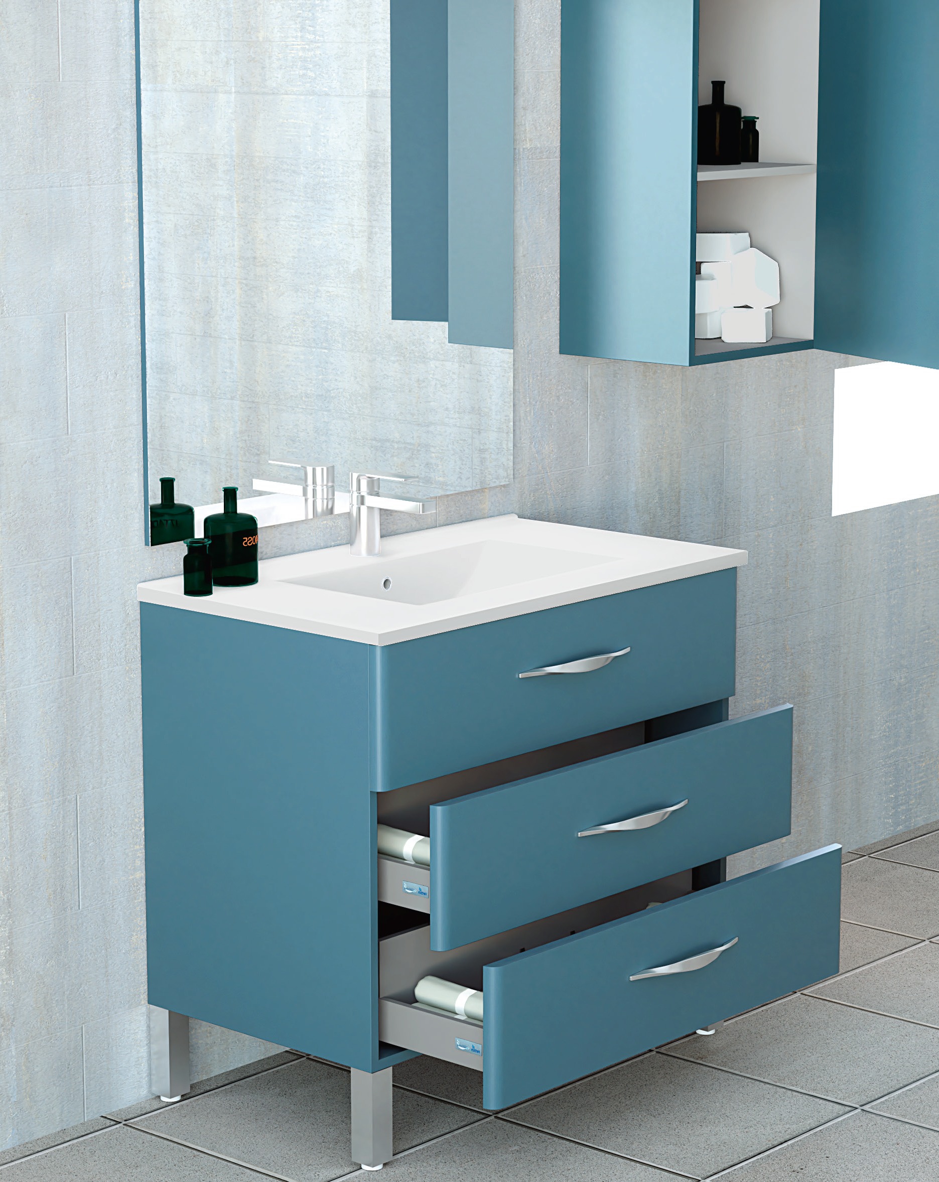 Composición Mueble de Baño Modelo Tecia 02. 3 cajones y patas